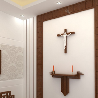 Khi thiết kế bàn thờ công giáo tại phòng ngủ cần tính toán diện tích đặt đồ vật sao cho hợp lý cũng như cần lưu ý bàn thờ Chúa chỉ đặt: