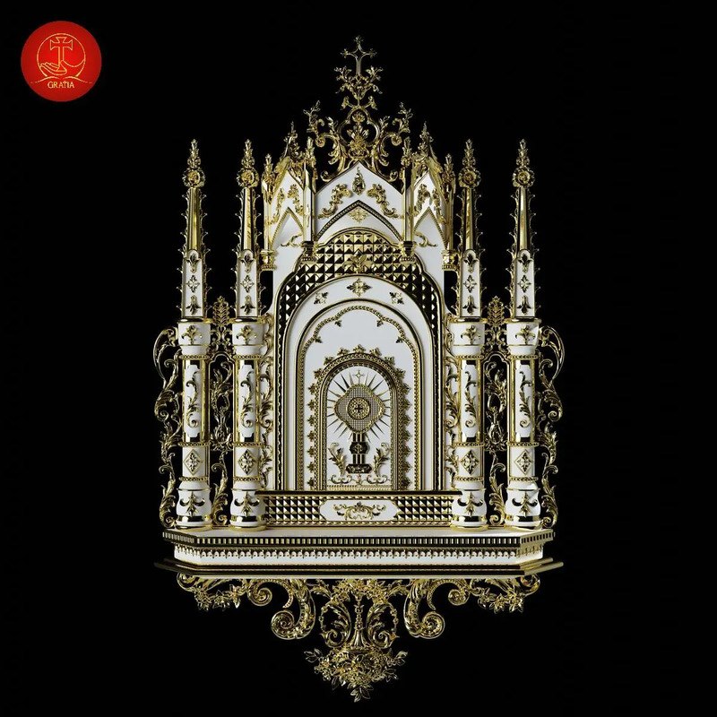 Mẫu nhà tạm tròn màu Gold: Mẫu này kết hợp giữa sự truyền thống và sang trọng. Màu gold mang lại cảm giác ấm áp, tôn trọng và linh thiêng, phù hợp với hầu hết phong cách thiết kế nội thất nhà thờ. Đây là lựa chọn an toàn nhưng vô cùng thanh lịch.