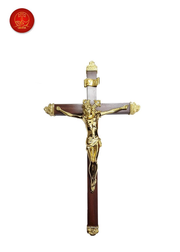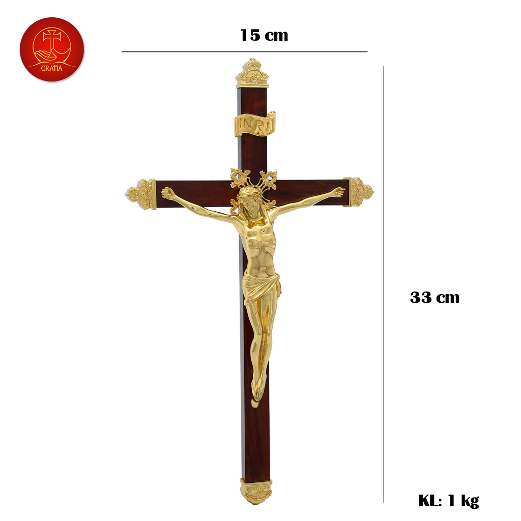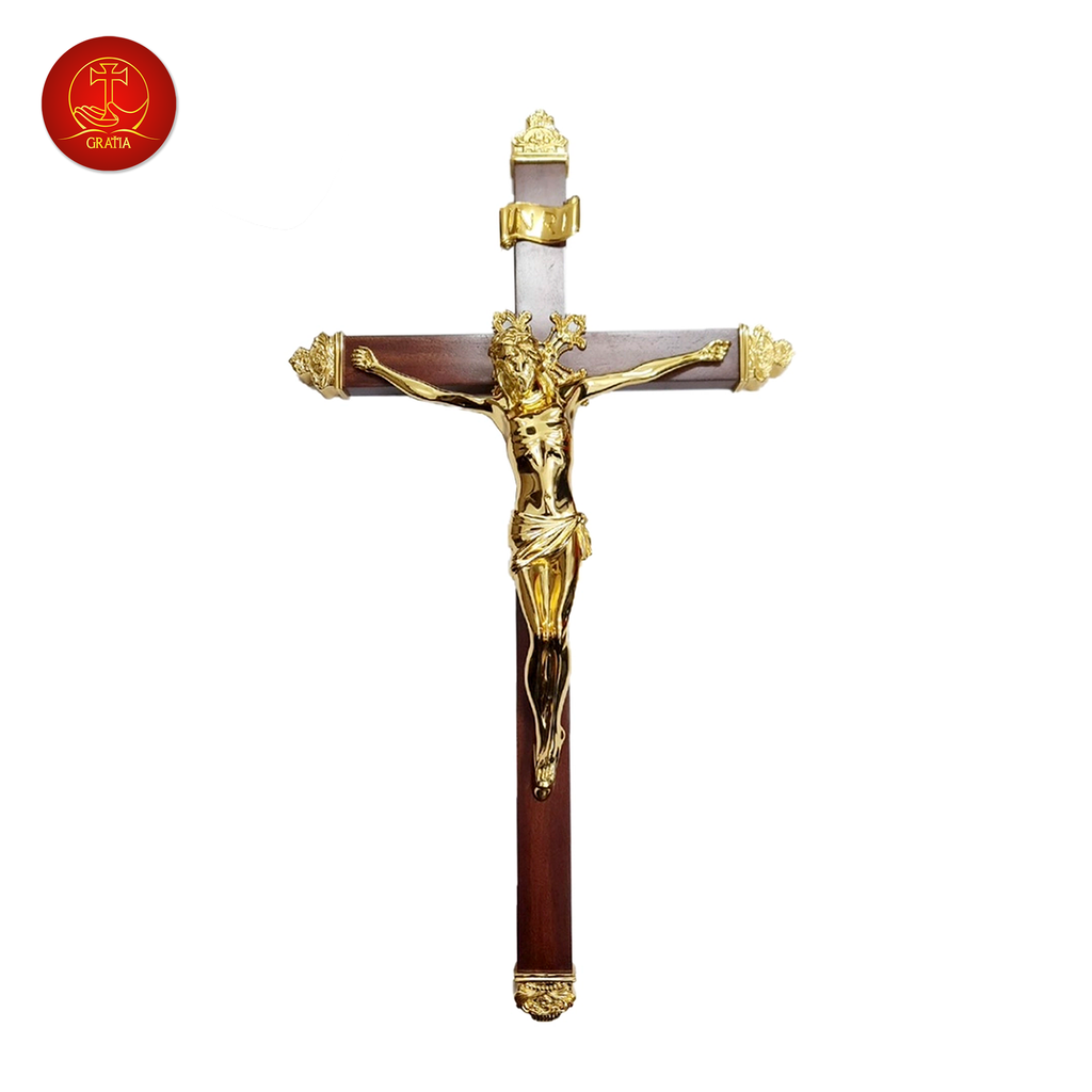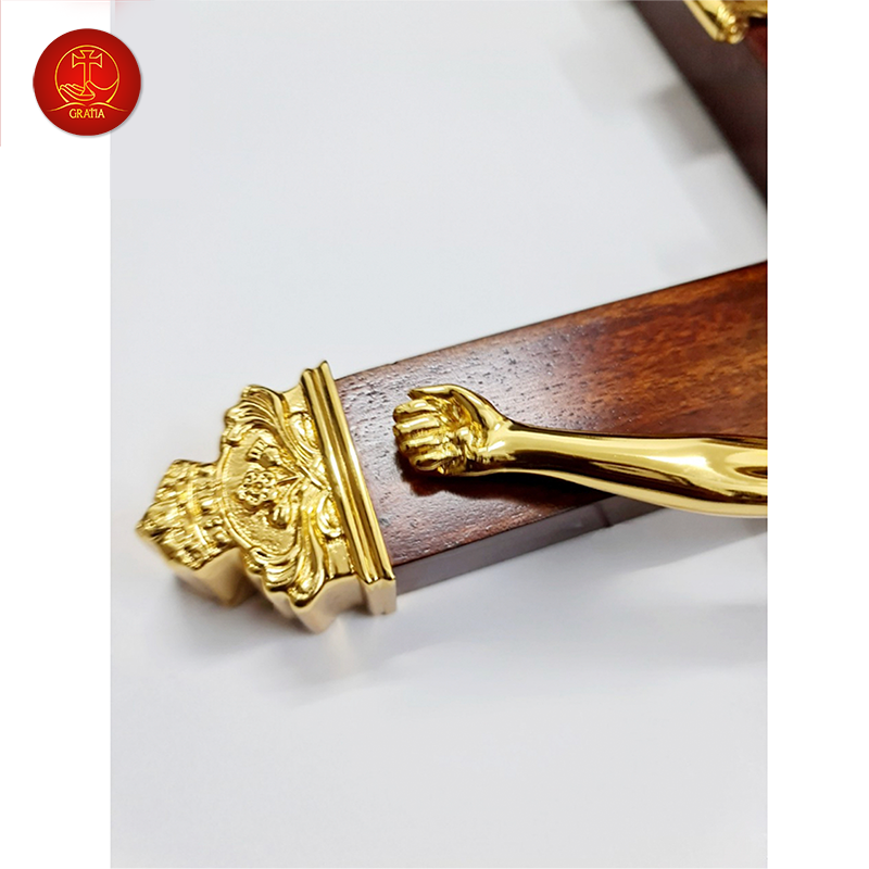 Chúa chịu chết thánh giá gỗ treo được làm bằng chất liệu đồng thau, công nghệ xử lý tạo màu sản phẩm mang màu sắc đặc trưng của Gratia, bề mặt sản phẩm được phủ một lớp bảo vệ giúp sản phẩm không bị ảnh hưởng từ môi trường, giữ cho màu sắc không bay màu.