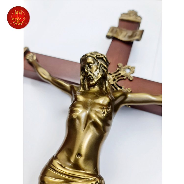 Chúa chịu chết thánh giá gỗ treo được làm bằng chất liệu đồng thau, công nghệ xử lý tạo màu sản phẩm mang màu sắc đặc trưng của Gratia, bề mặt sản phẩm được phủ một lớp bảo vệ giúp sản phẩm không bị ảnh hưởng từ môi trường, giữ cho màu sắc không bay màu.